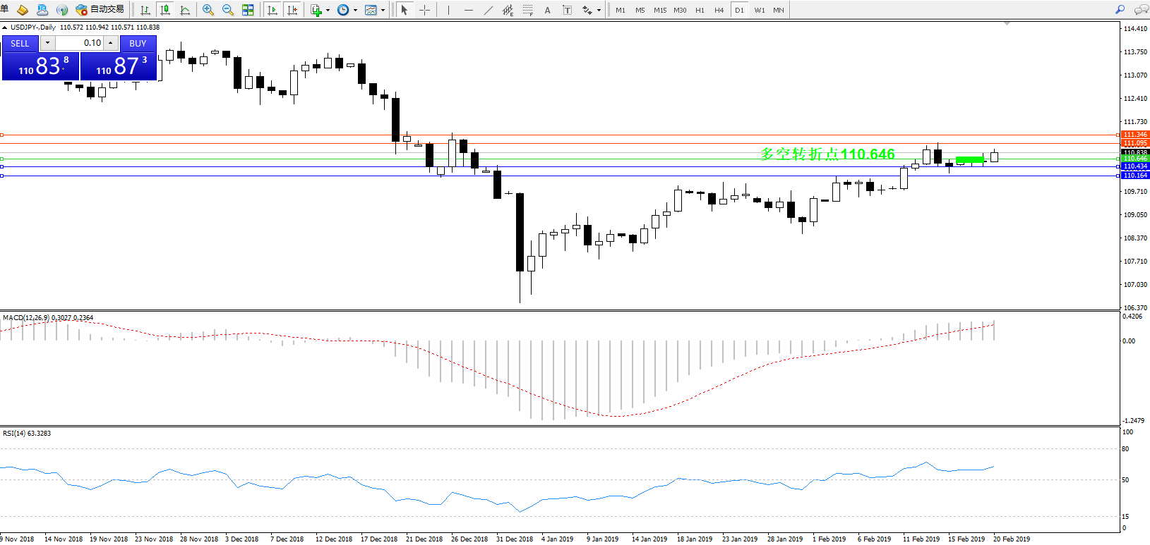 交易策略:110.646上方看涨,目标111.095111.346
