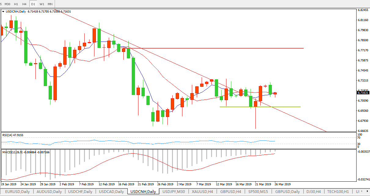 美元兑人民币USDCNH 日线图: