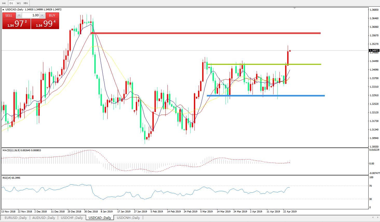 美元兑加元USDCAD    日线