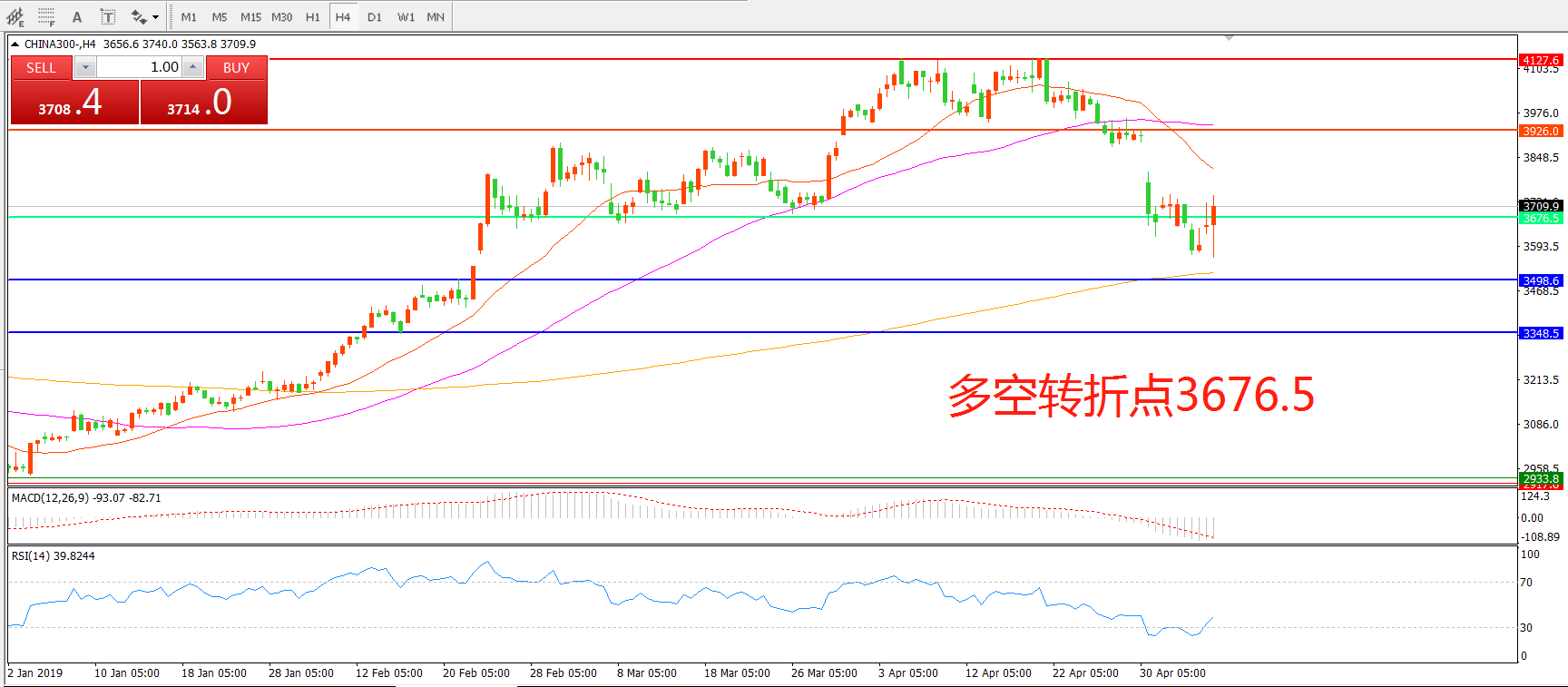 沪深300指数CHINA300 4小时图