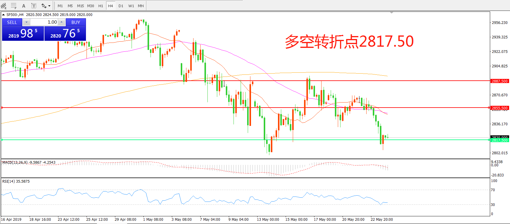多空转折点:2818.50