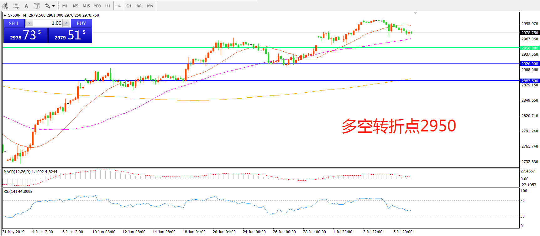 多空转折点:2950.00