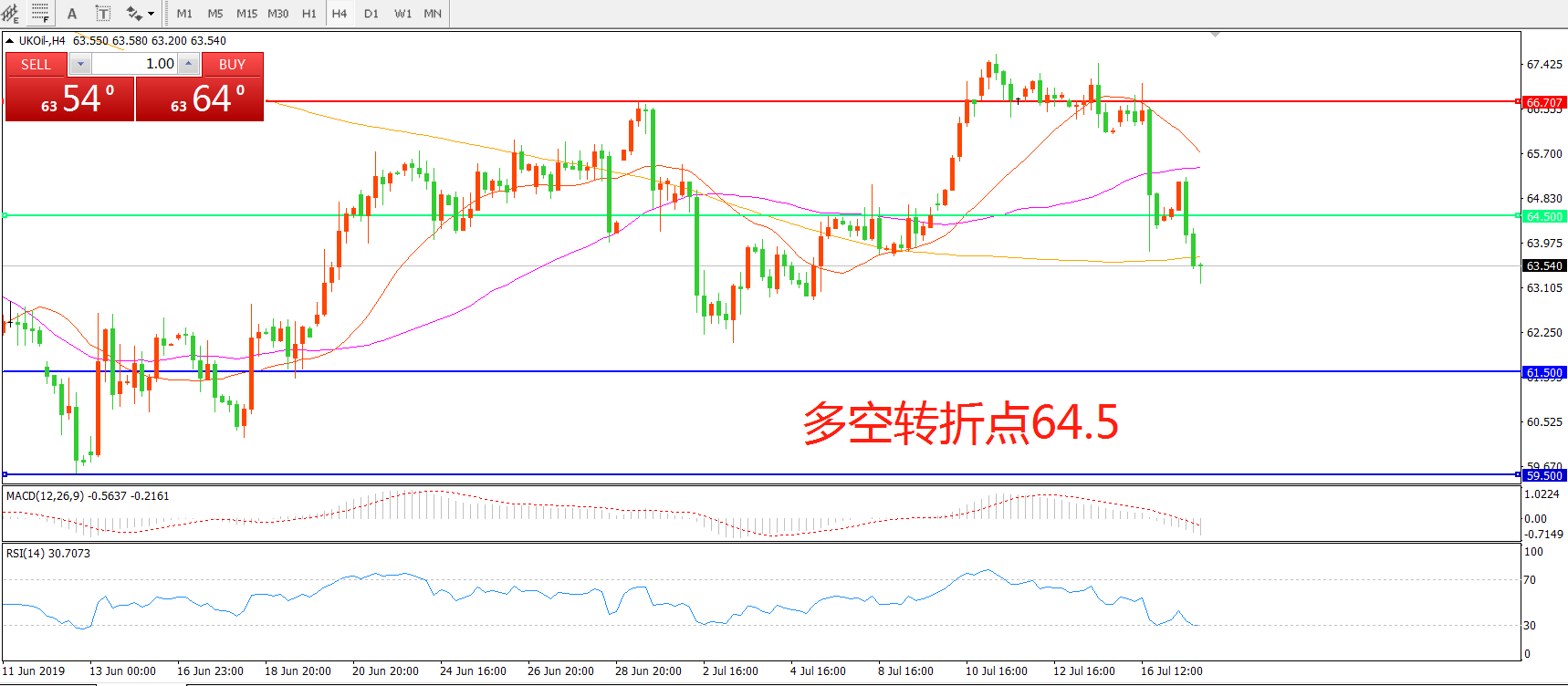交易策略:在64.50之下看跌,目标61.50   59.50