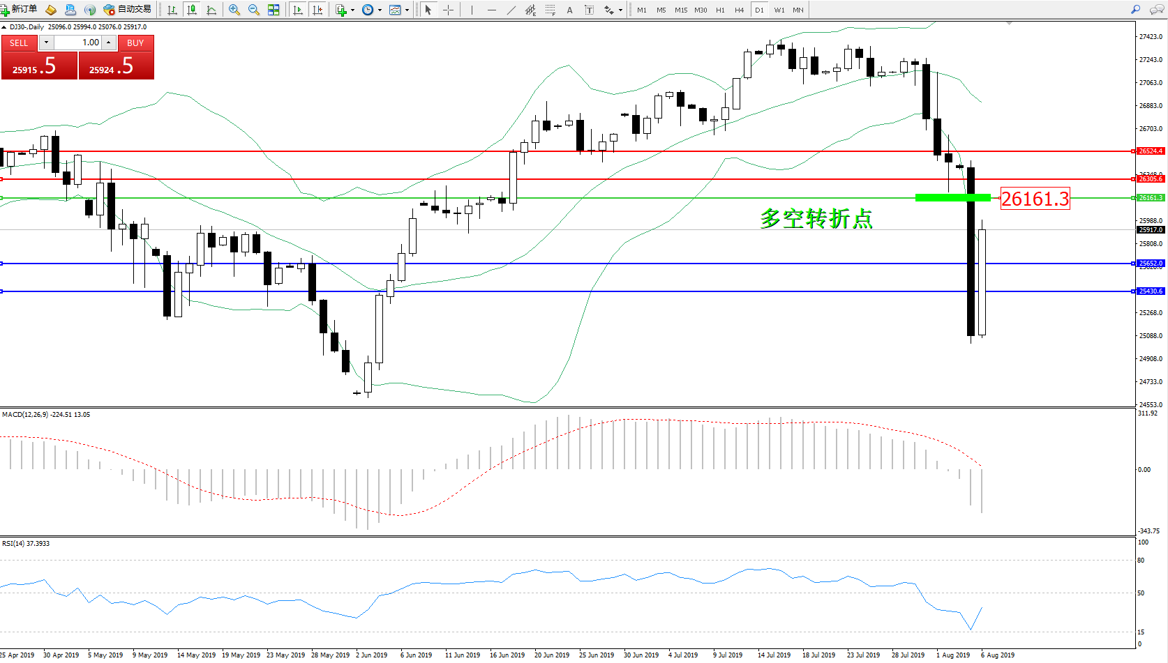道琼斯指数86日(周二)收盘上涨311.80点,涨幅1.21%,报26029.52点。全球贸易局势升级中,美联储进一步宽松预期升温,令美元跌至两周低点,但避险环境中,美元也有一定避险需求,市场认为美元资产有过分下跌的嫌疑,且日内美债收益率探底回升,也支撑了美元走高,展望未来,美元料维持中期震荡的格局。此外,但美联储官员表示,美国消费信心和支出都很强健,劳动力市场也很强劲,在没有更有力的证据证明经济下行的时候,不会进行激进的降息。