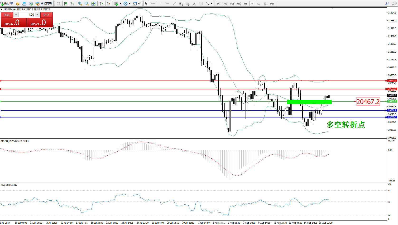日经225指数8月16日(周五)收盘上涨29.35点,涨幅0.14%,报20435.00点。日本7月出口料连续第八个月萎缩,核心通胀持续不振;因贸易担忧且全球需求疲软,损及全球第三大经济体日本的出货。调查显示,令决策官员面临更大挑战的是,日本7月核心消费者物价涨幅预料也将维持在两年低点,受到能源相关价格走弱影响;日本进口将较上年同期下滑2.7%,意味着日本贸易收支将转为逆差2000亿日元(18.8亿美元),6月修正后为顺差5896亿日元。调查同时显示,7月核心消费者物价指数料较上年同期上涨0.6%,齐平6月涨幅。