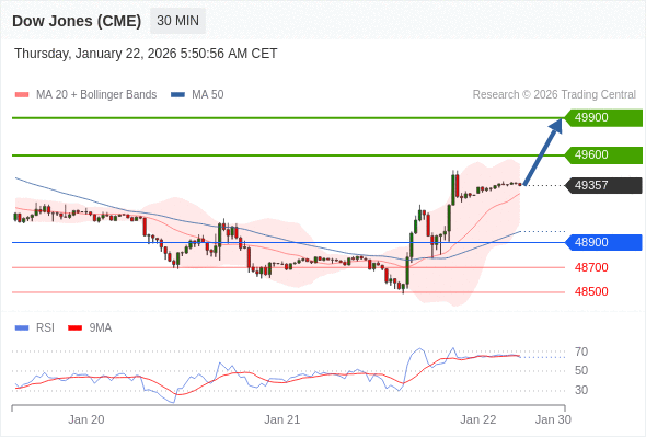 在 48900 之上,看涨,目标价位为 49600 ,然后为 49900 。