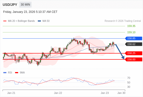 交易策略: 在 158.85 之下,看跌,目标价位为 158.25 ,然后为 158.00 。