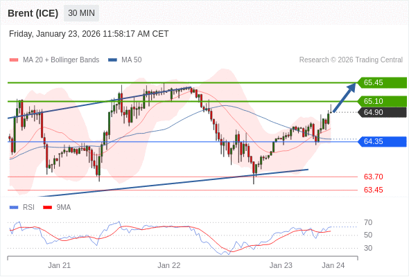 在 64.35 之上,看涨,目标价位为 65.10 ,然后为 65.45 。
