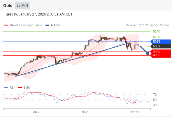 在 5065 之下,看跌,目标价位为 4990 ,然后为 4965 。