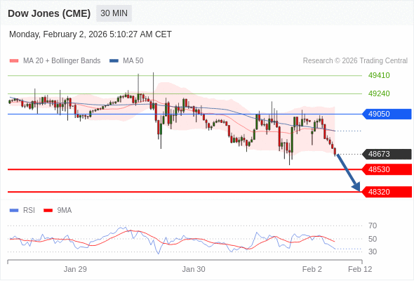 在 49050 之下,看跌,目标价位为 48530 ,然后为 48320 。