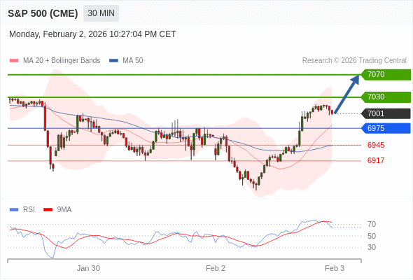 在 6975 之上,看涨,目标价位为 7030 ,然后为 7070 。