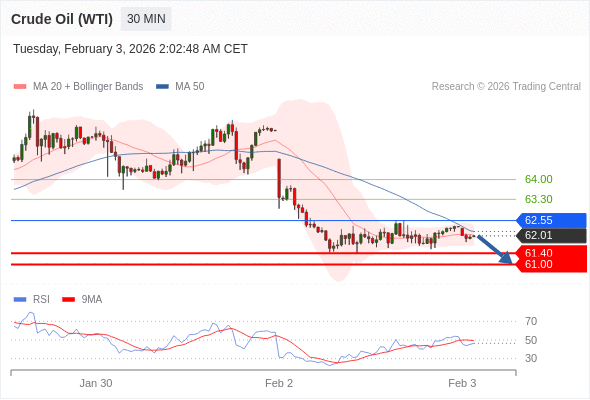 在 62.55 之下,看跌,目标价位为 61.40 ,然后为 61.00 。