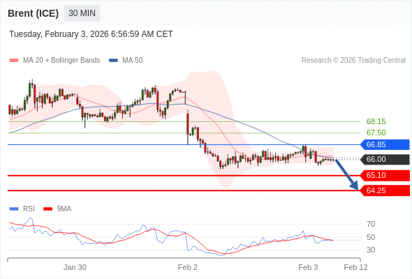 在 66.85 之下,看跌,目标价位为 65.10 ,然后为 64.25 。