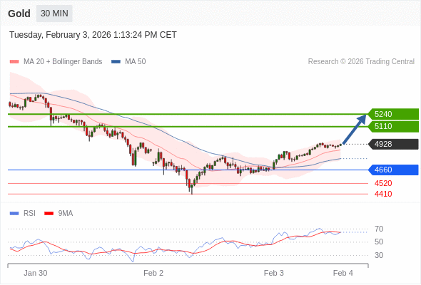 交易策略: 在 4660 之上,看涨,目标价位为 5110 ,然后为 5240 。