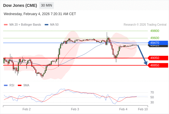 交易策略: 在 49470 之下,看跌,目标价位为 49050 ,然后为 48850 。