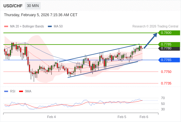 在 0.7765 之上,看涨,目标价位为 0.7785 ,然后为 0.7800 。