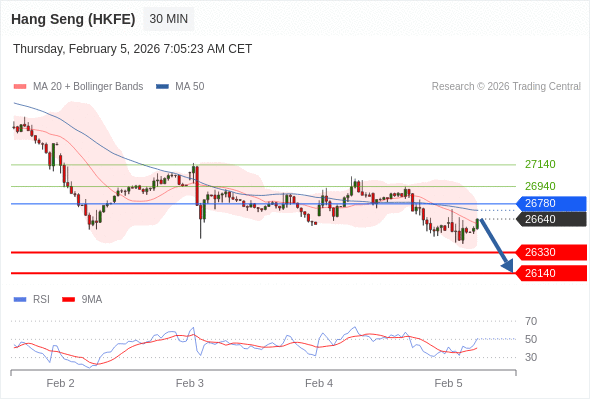 在 26780 之下,看跌,目标价位为 26330 ,然后为 26140 。