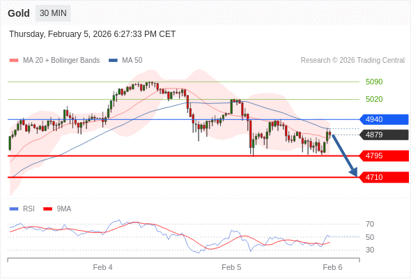 在 4940 之下,看跌,目标价位为 4795 ,然后为 4710 。