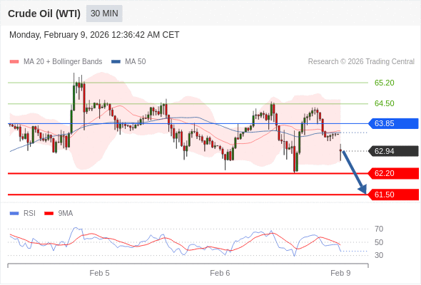在 63.85 之下,看跌,目标价位为 62.20 ,然后为 61.50 。