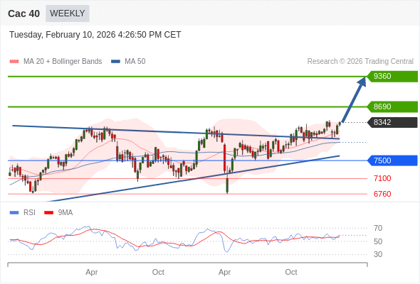 交易策略: 在 7500 之上,看涨,目标价位为 8690 ,然后为 9360 。