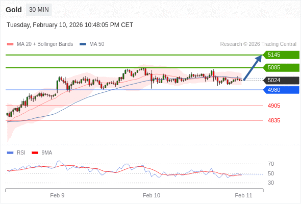 在 4980 之上,看涨,目标价位为 5085 ,然后为 5145 。