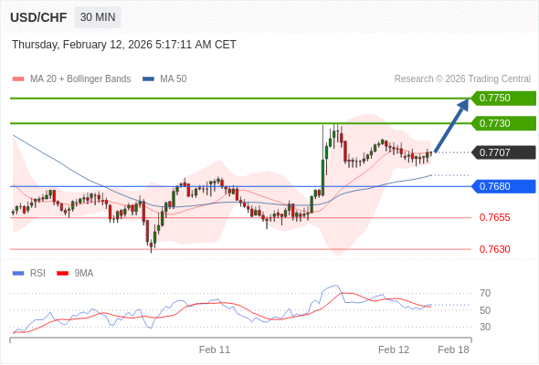 在 0.7680 之上,看涨,目标价位为 0.7730 ,然后为 0.7750 。