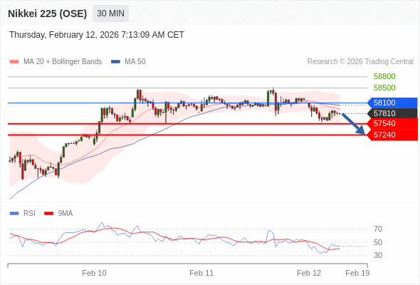 交易策略: 在 58100 之下,看跌,目标价位为 57540 ,然后为 57240 。