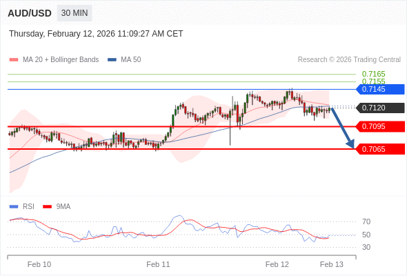 在 0.7145 之下,看跌,目标价位为 0.7095 ,然后为 0.7065 。