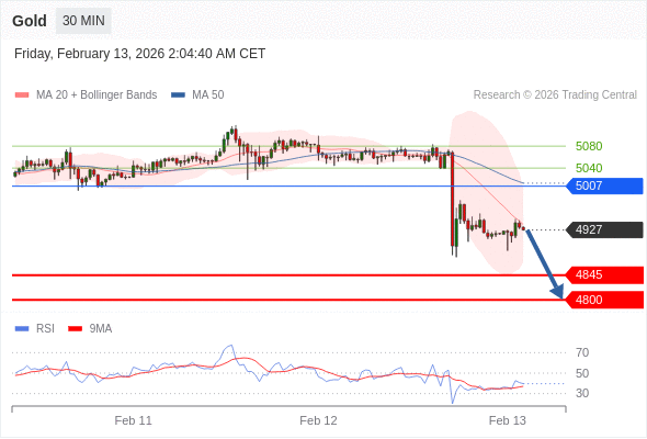 在 5007 之下,看跌,目标价位为 4845 ,然后为 4800 。