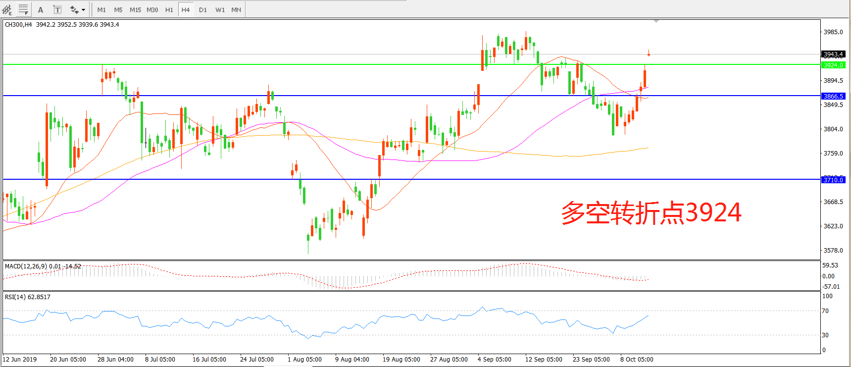 多空转折点:3924.00