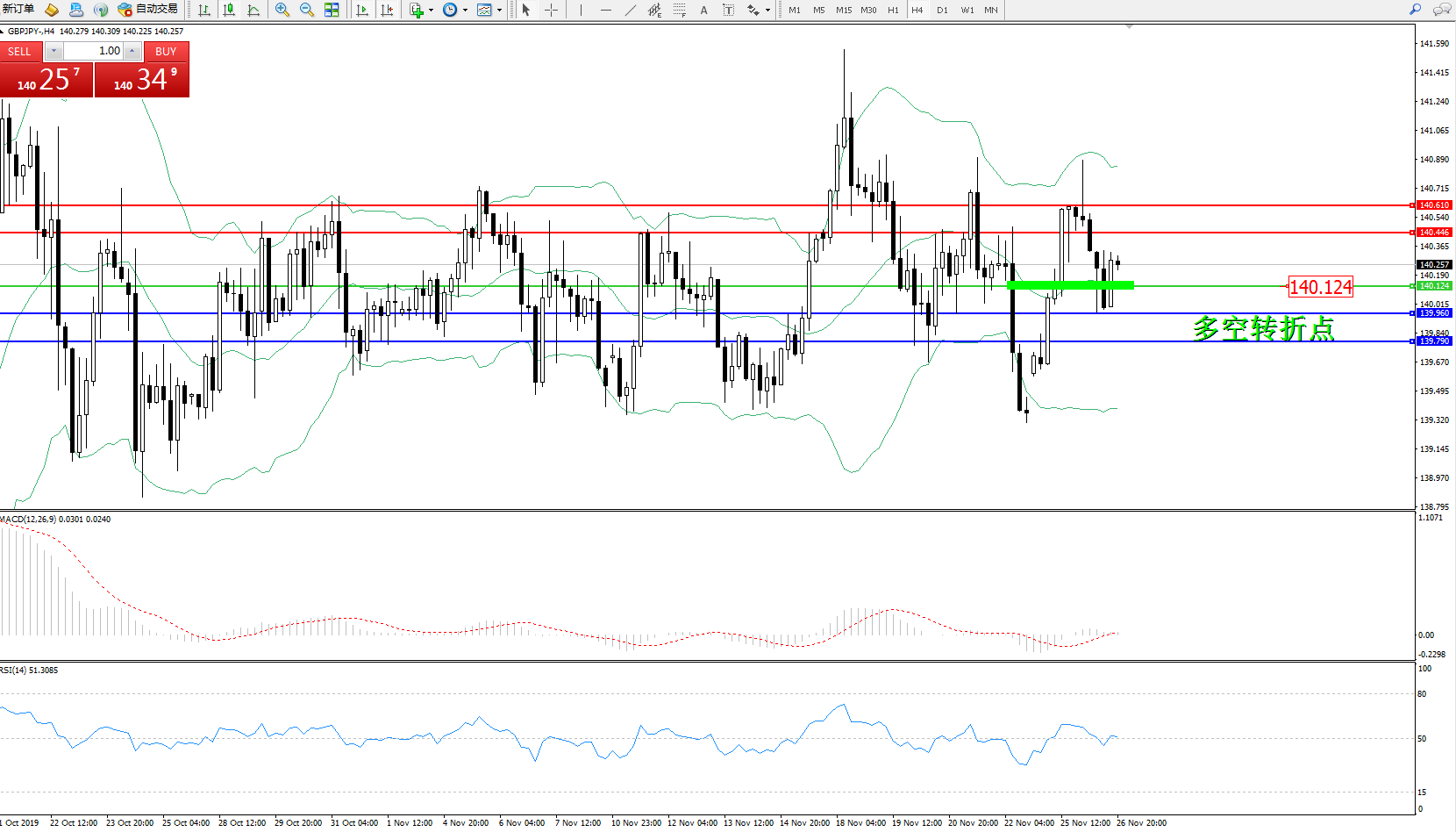 交易策略:140.124上方看涨,目标140.446、140.610