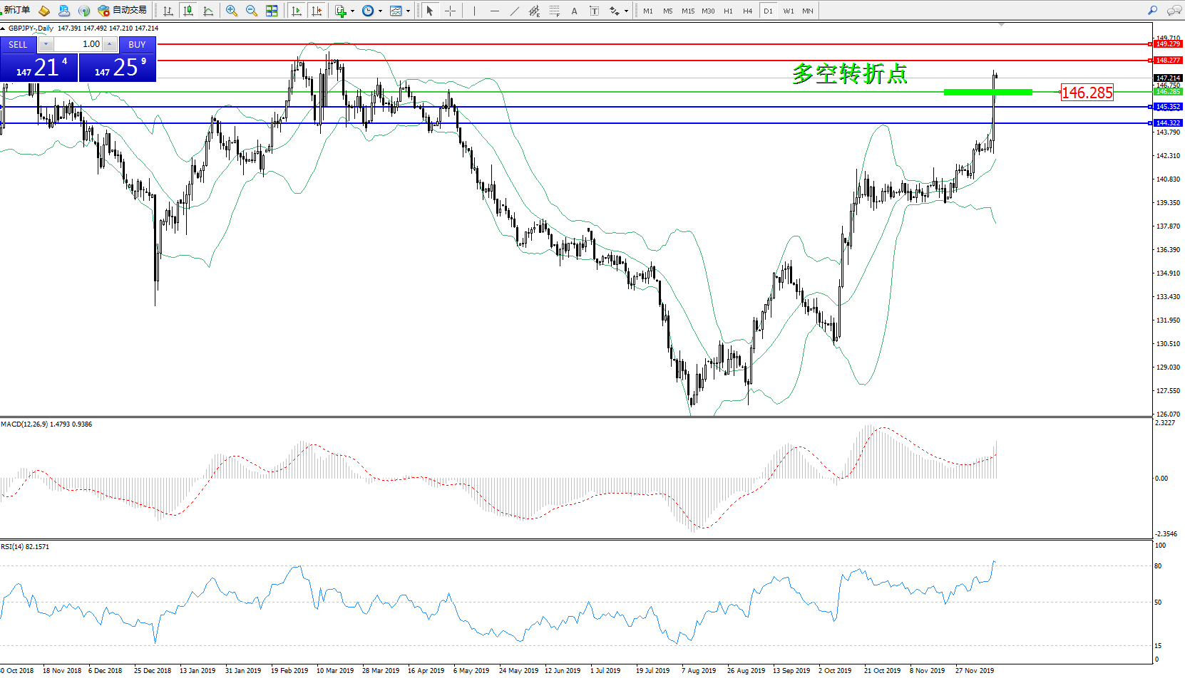 技术点评:多头强势拉声突破布林带指标上轨后有继续上行态势,前期高位近在咫尺,布林带指标呈张口态势中,MACD指标处于多头区域缓慢上行,多头量能柱日渐强悍,RSI指标多头强势上攻突破80均衡线高位超买区压制;