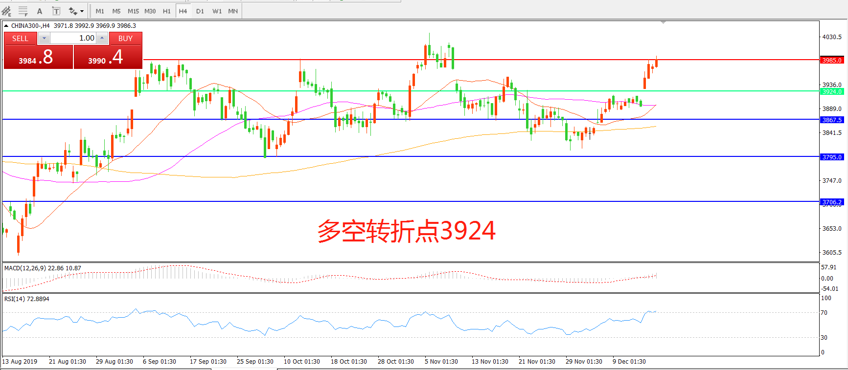 多空转折点:3924.00
