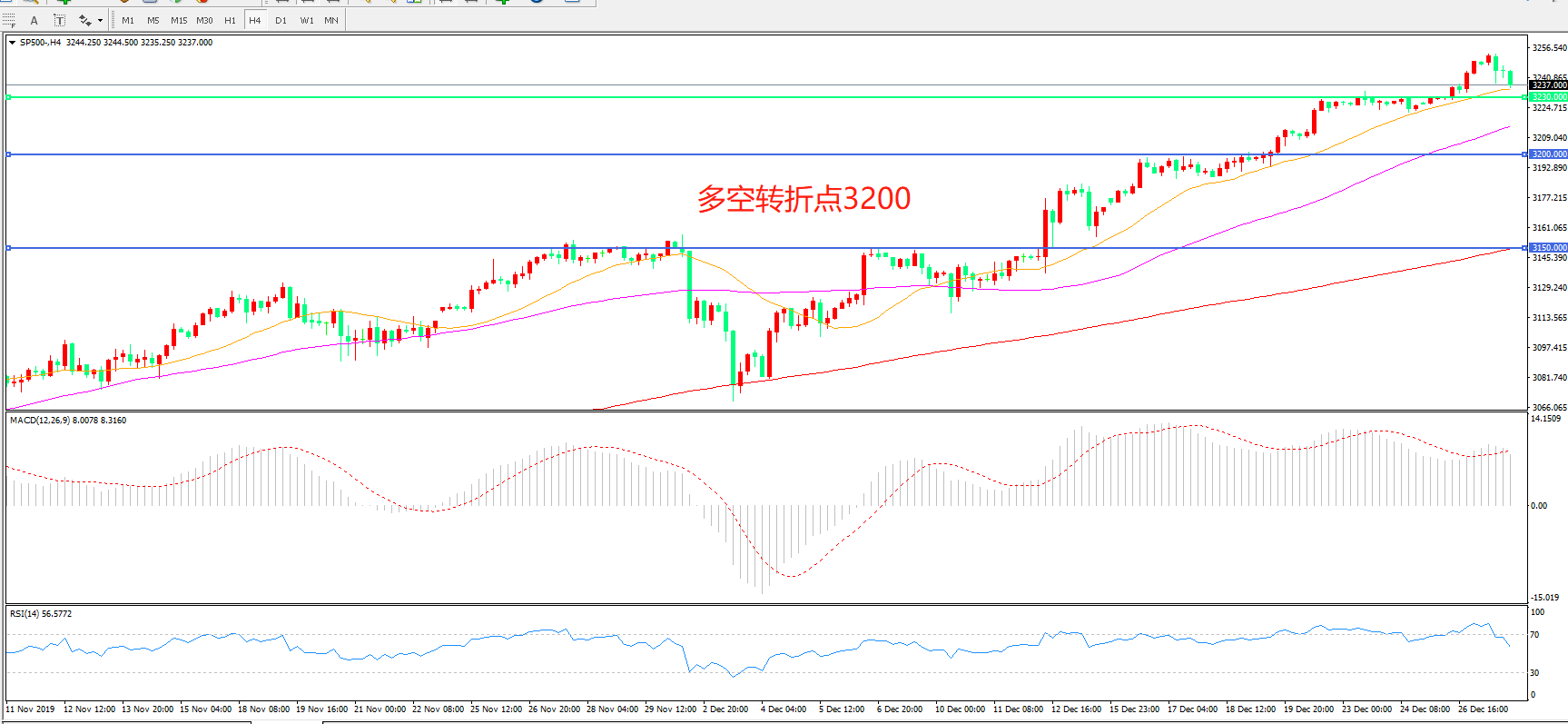 2019年美股仅剩最后几个交易日,市场对完成国际贸易协议的前景充满了期待,标普500震荡上行,11个板块中有6个板块上涨,再创历史新高,收报3237点。苹果微跌0.04%,结束此前的三连涨,当周累涨3.71%。亚马逊涨0.06%;微软涨0.18%,,中概股方面,阿里巴巴跌0.42%,京东跌0.86%。