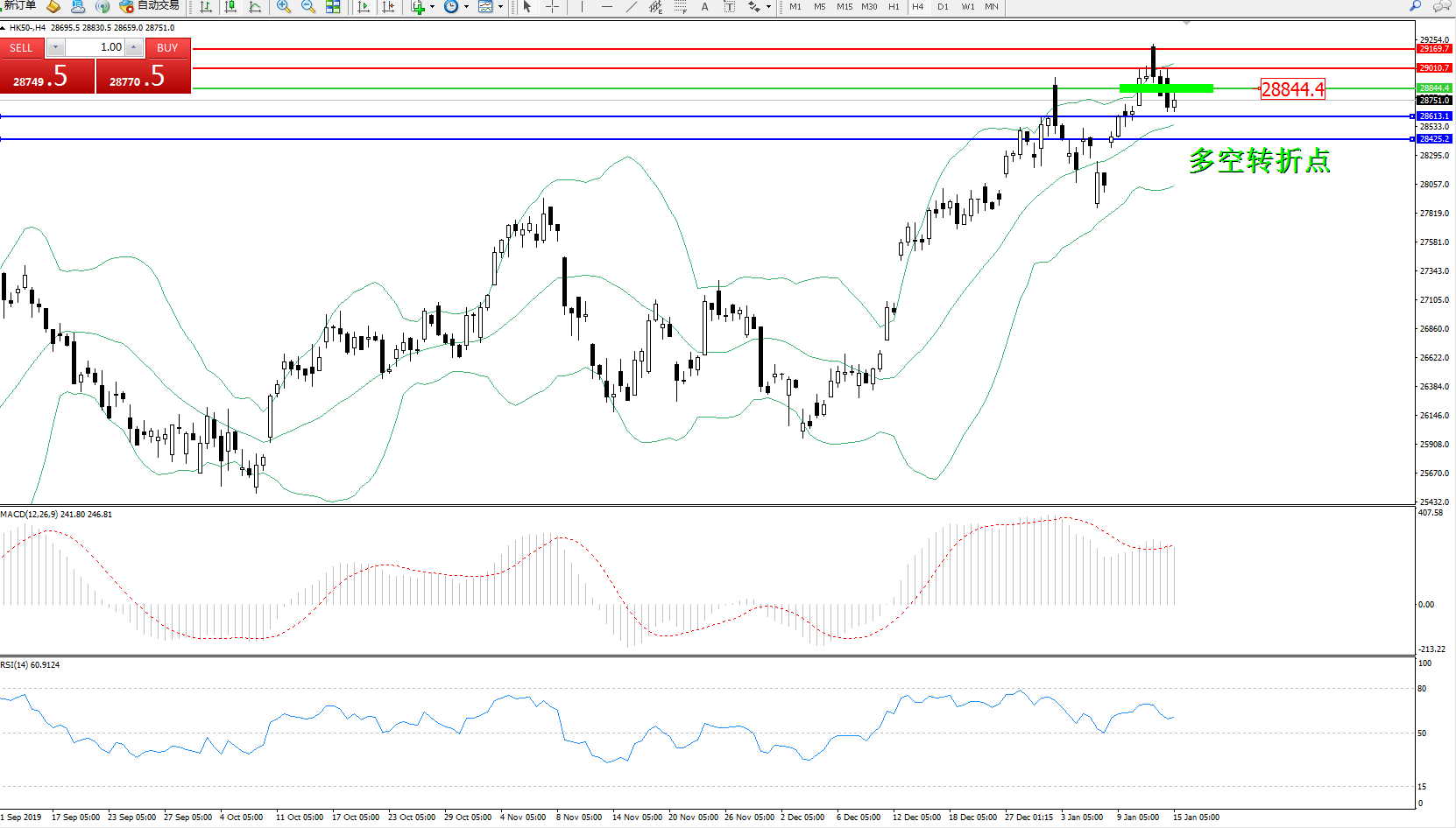 香港恒生指数115日(周三)收盘下跌111.55点,跌幅0.39%,报28773.59点;港股小幅高开随后再扩大升幅,尝试突破29000关口,但高见仅28972,未能成功。沽盘实时涌现,回落再倒跌,恒指最低见28644。恒指小幅回落,反映出市场风险投资情绪转趋谨慎。由于港股早前已累积颇大升幅,加上有不少股东减持消息,对市况有所影响亦属合理。至于升势是否已告一段落,则要视乎美股特别是科技股之表现。事实上,本轮科技股升幅理想,部分原因相信是与纳指强势有关。市场继续关注消息面的发展动向,港股较大概率以高位震荡盘整为主。