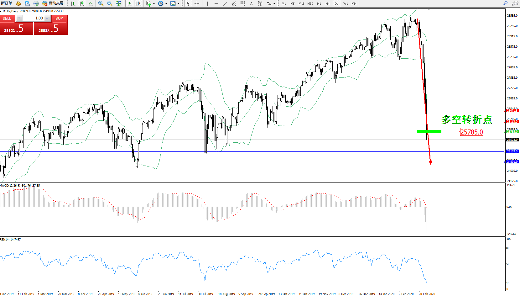 技术点评:空头动力延续布林带指标持续重挫下行,未有止步迹象,布林带指标呈张口走势太俗良好,MACD指标处于0轴线下方空头区域持续重挫下行,RSI指标空头动力持续向下移动触及超卖区15均衡线附近;