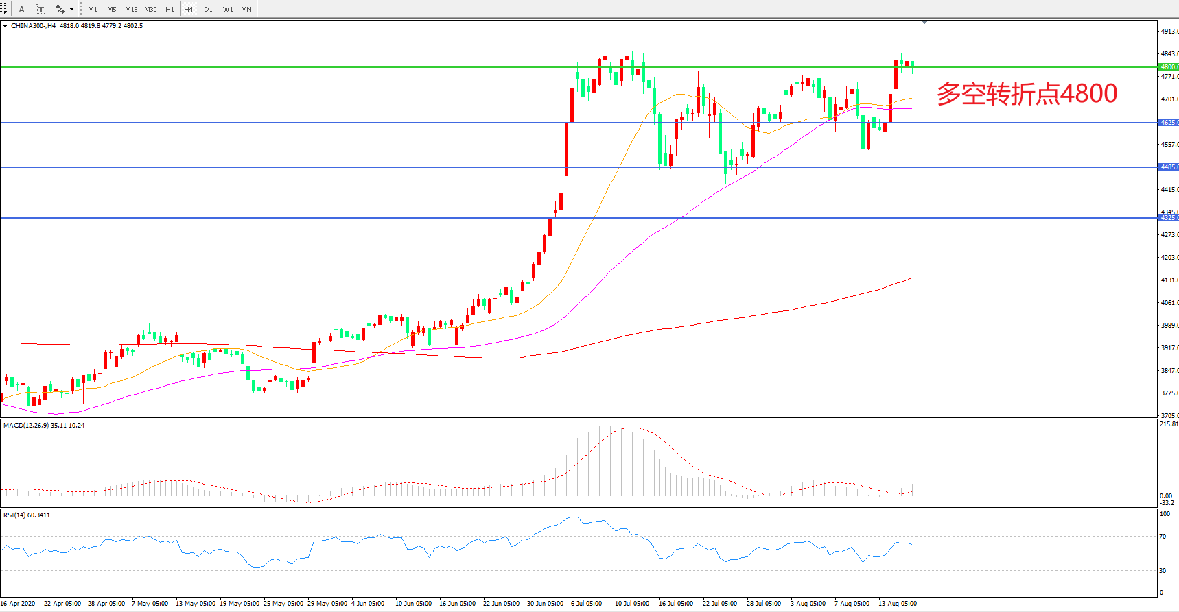 多空转折点:4800.00