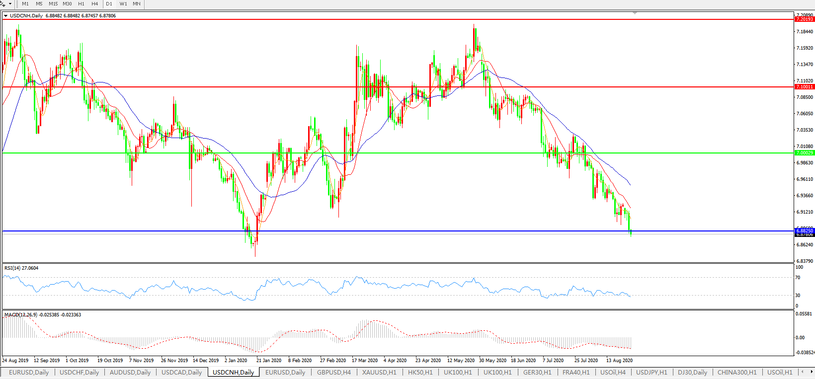 备选策略: 在7.1000之上,看涨,目标价位为7.2000,然后为7.3000。