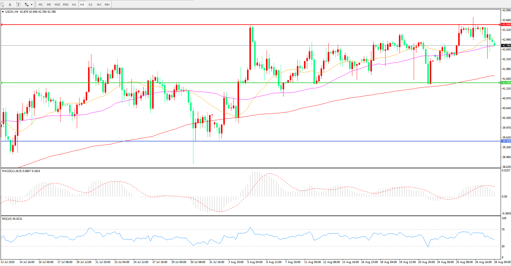 交易策略:在41.50之上看涨,目标43.50         46.00