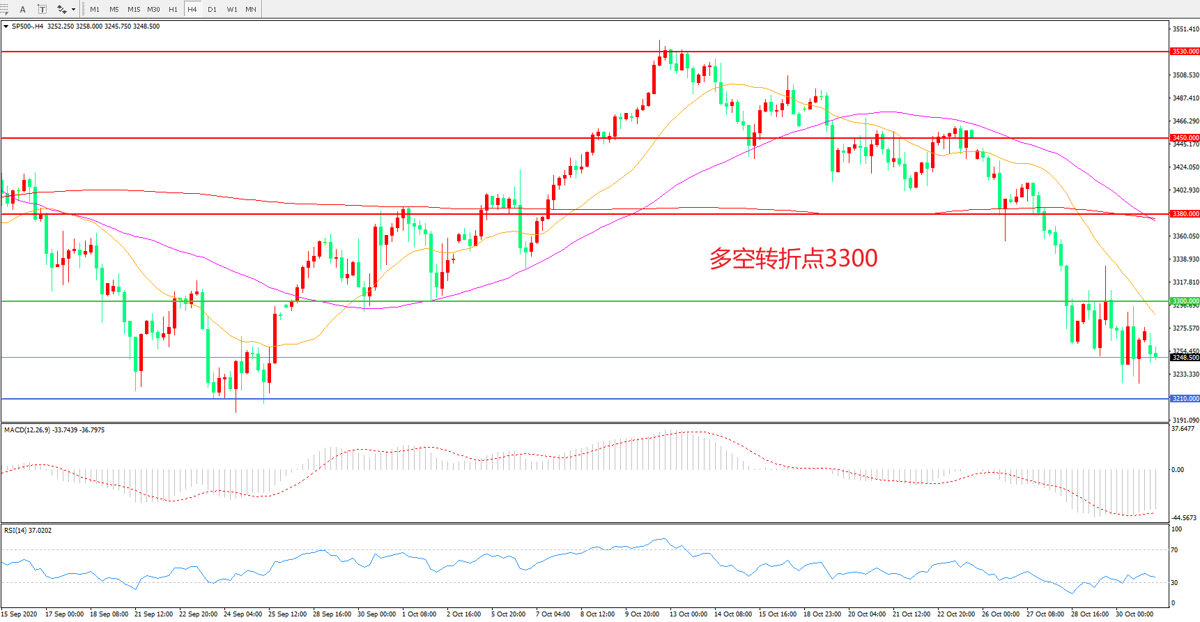交易策略:在3300.00之下看跌,目标3210.00 3105.00