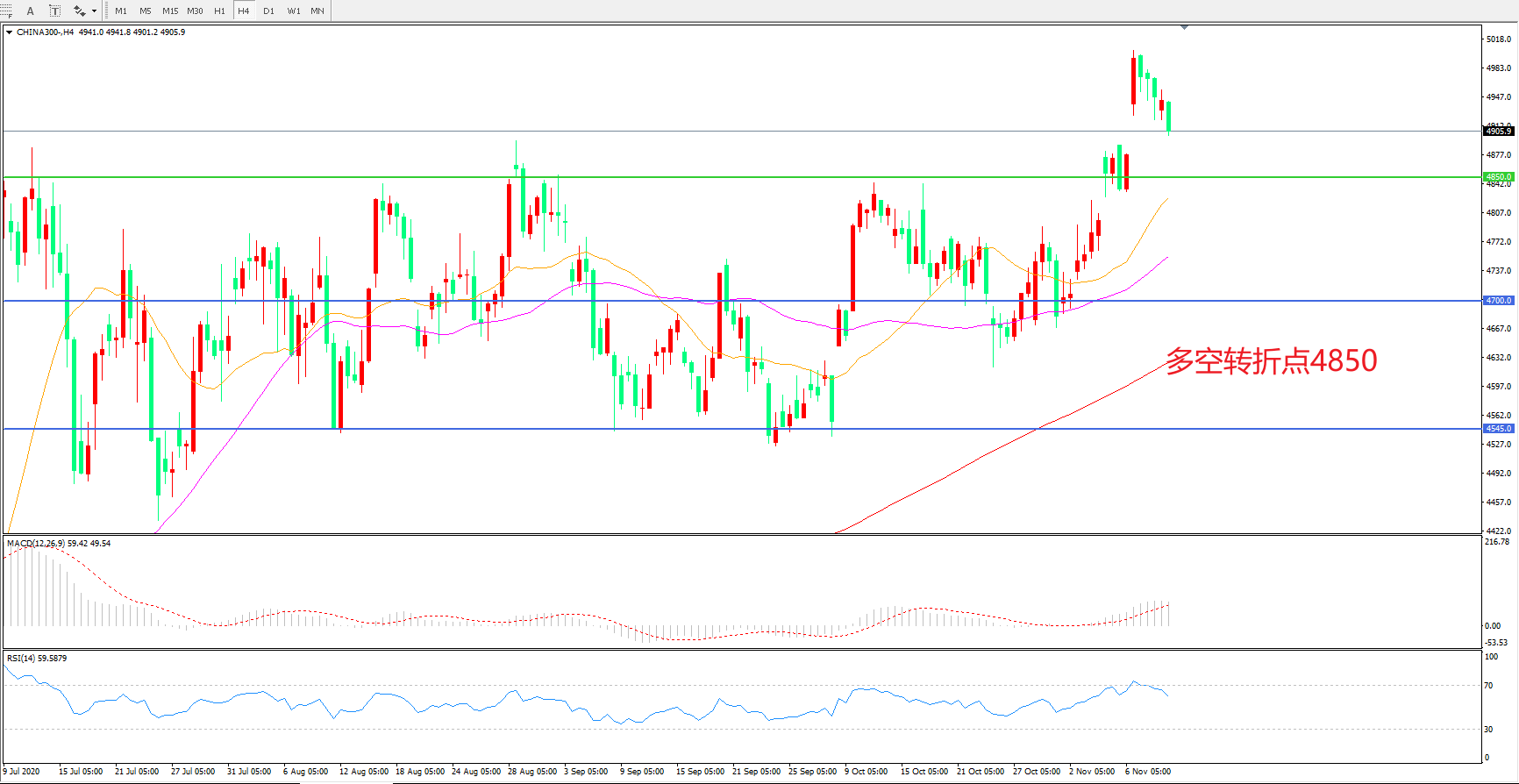 多空转折点:4850.00