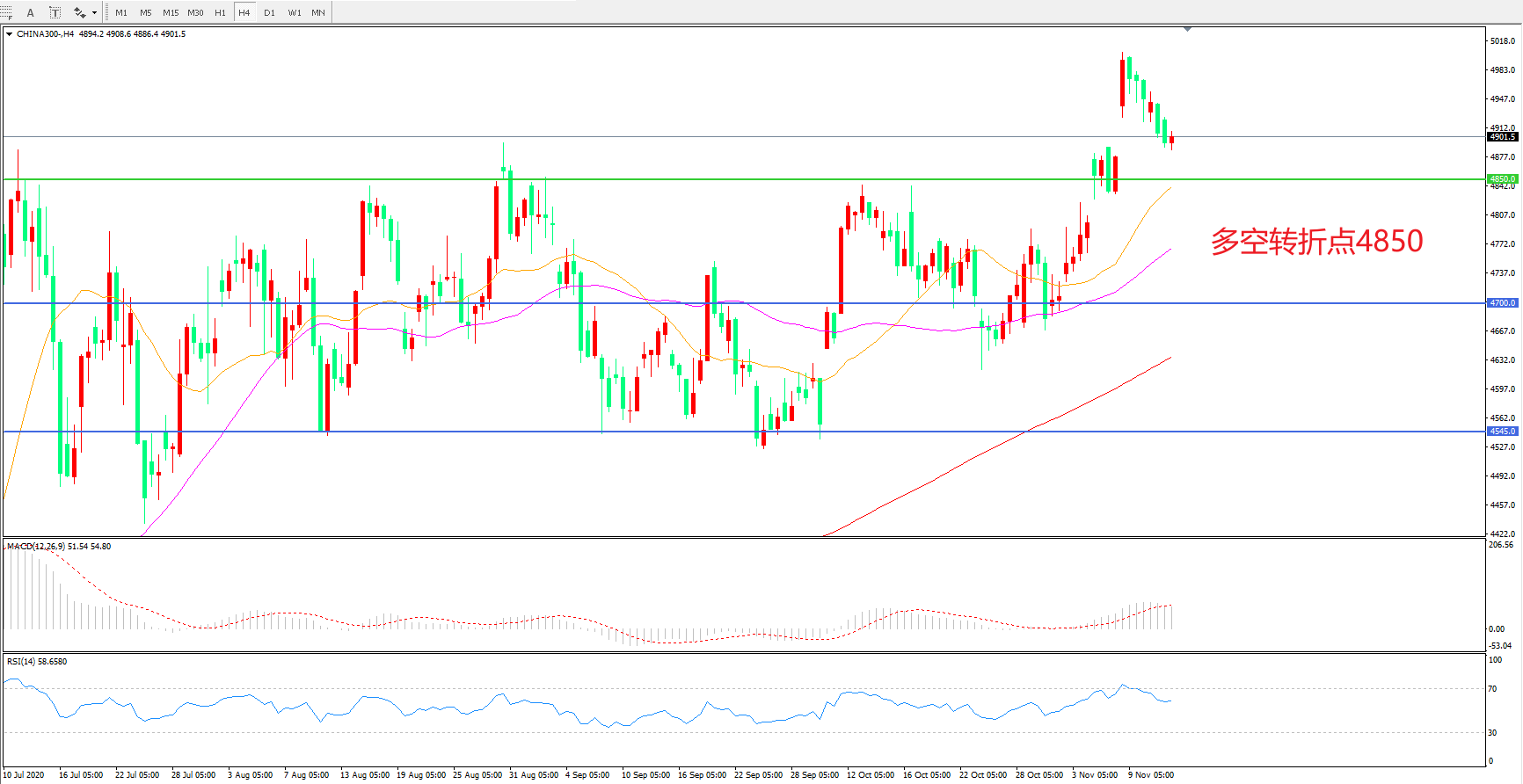 多空转折点:4850.00