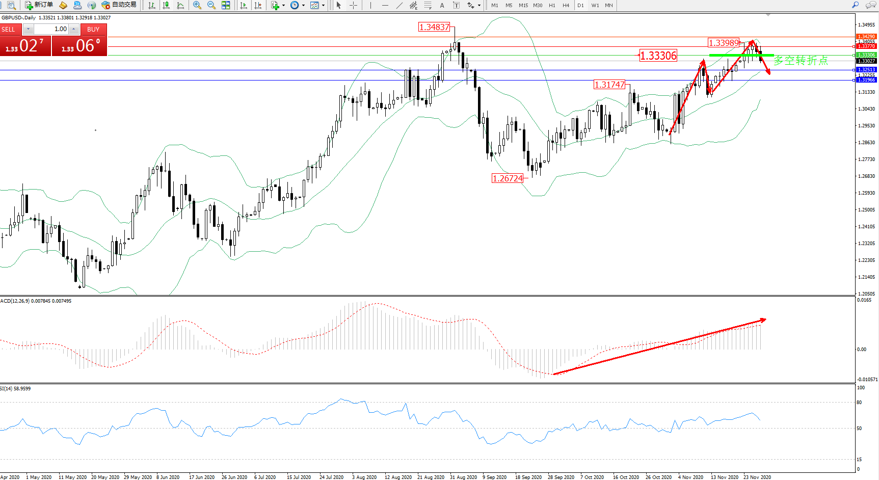 备选策略:1.33306上方看涨,目标1.33770、1.34290