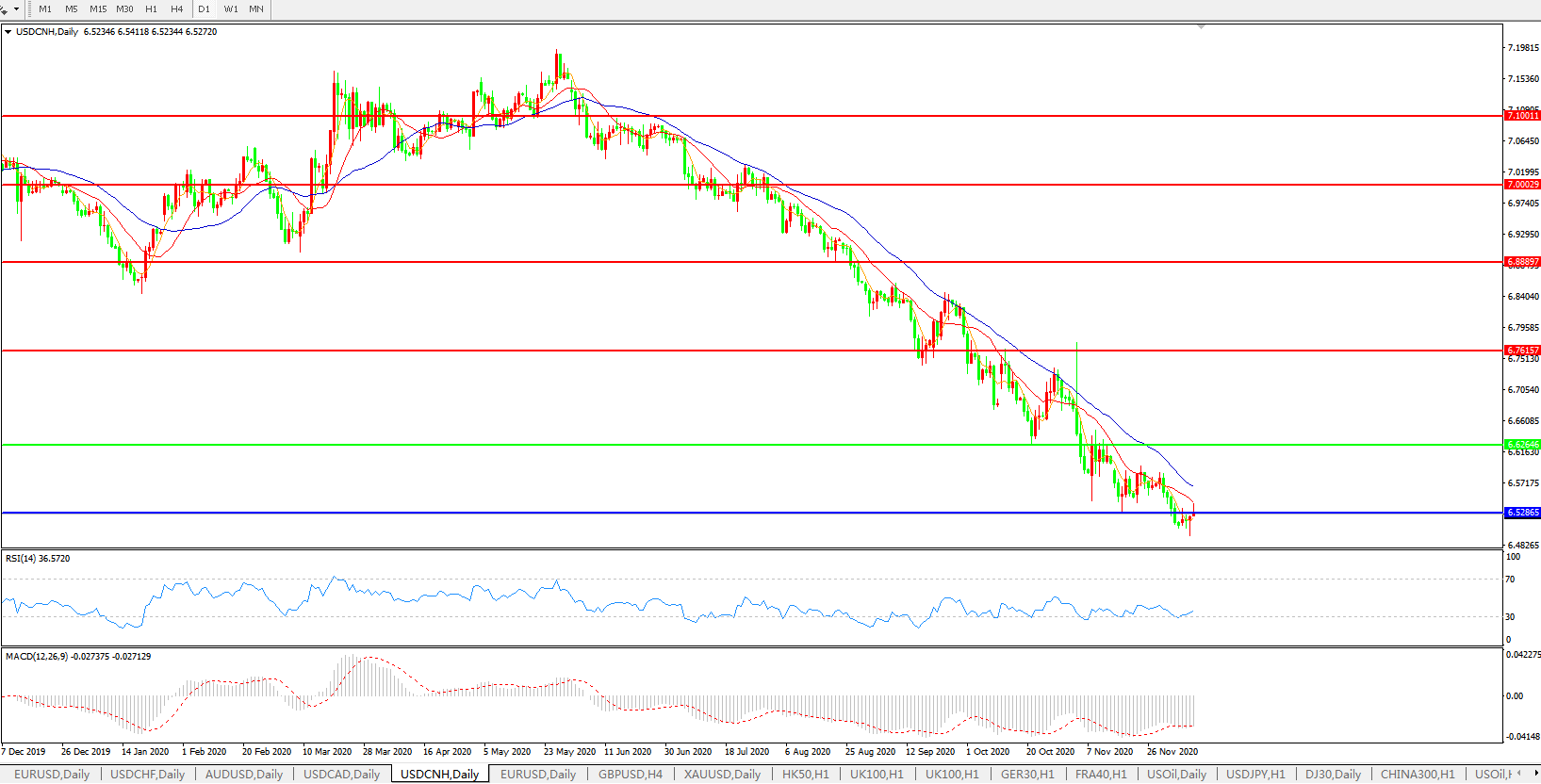 美元兑人民币USDCNH 日线图: