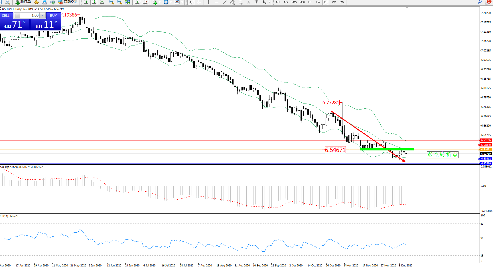 交易策略:6.54671下方看跌,目标6.50312、6.47860