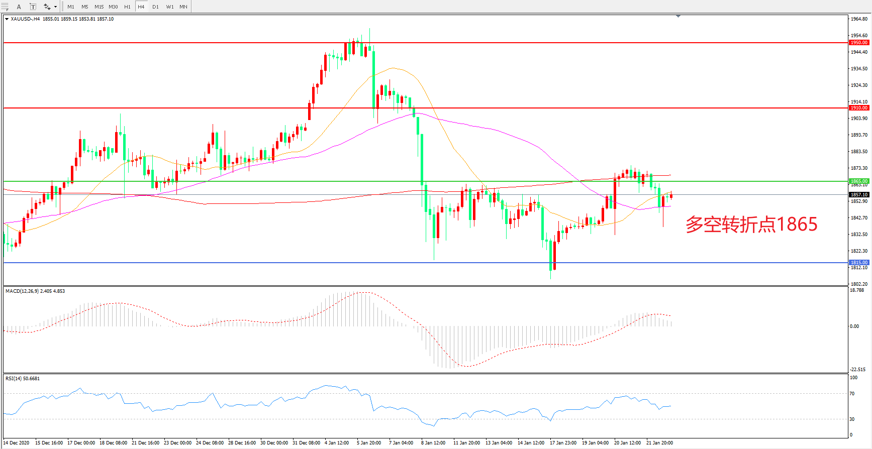 交易策略:在1865.00之下看跌,目标1815.00    1765.00