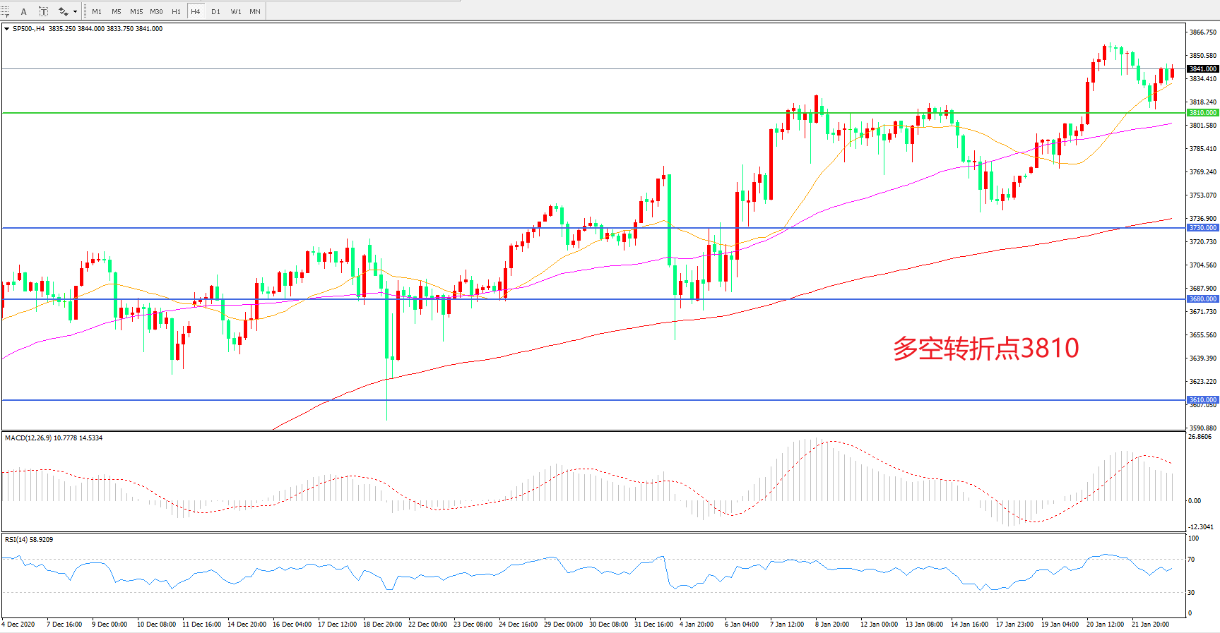 多空转折点:3810.00