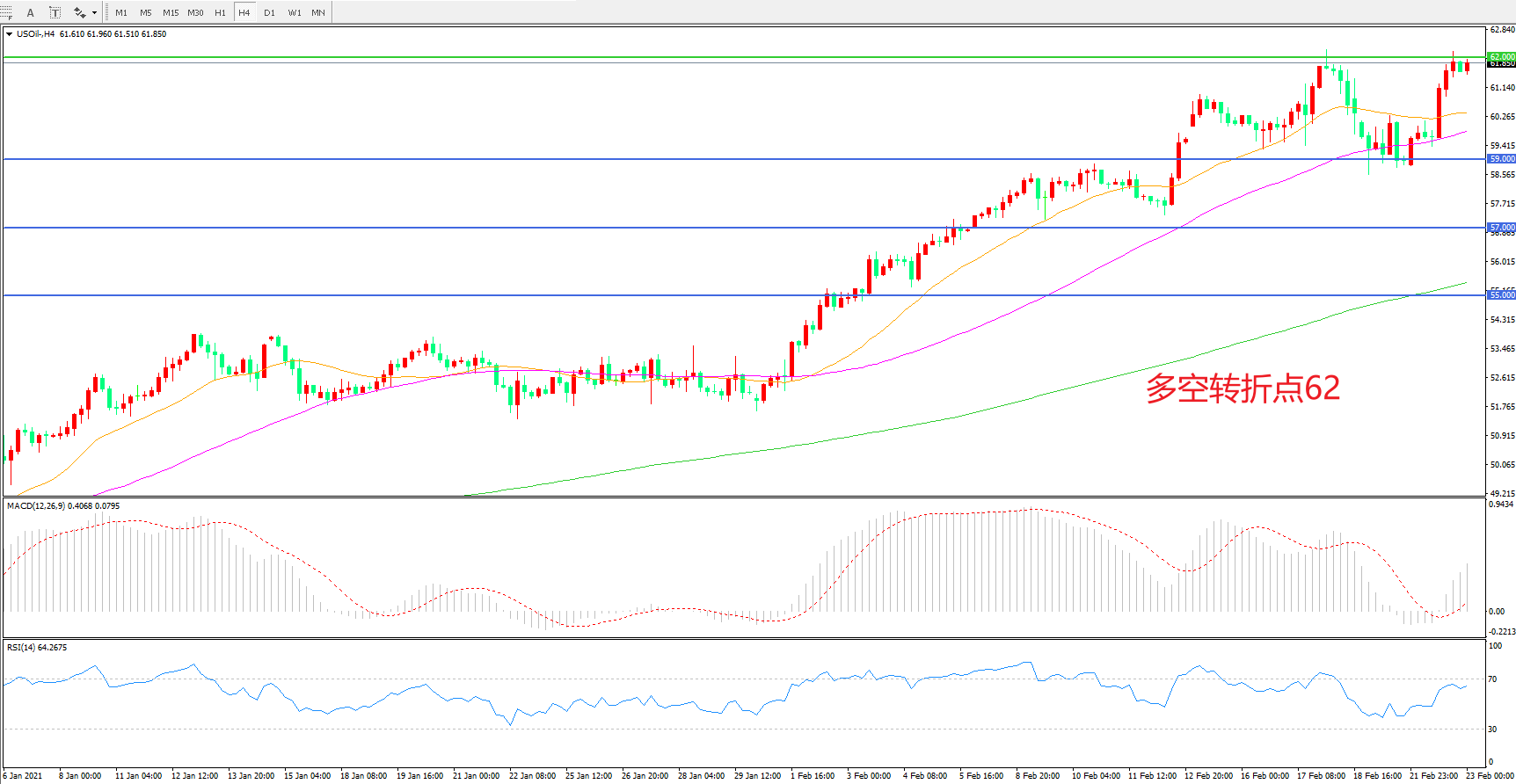 交易策略:在62.00之上看涨,目标65.00    68.00