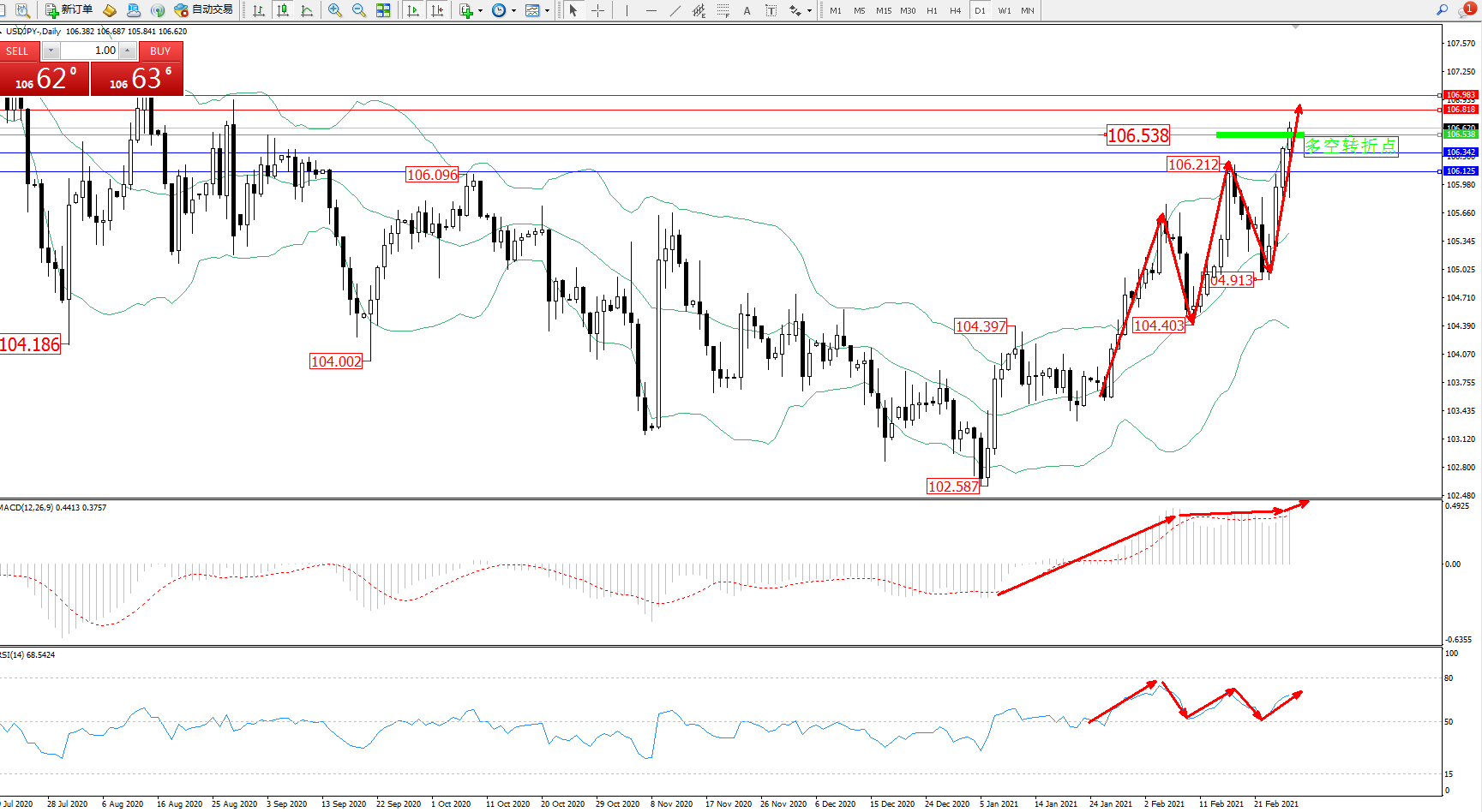 多空转折点:106.538