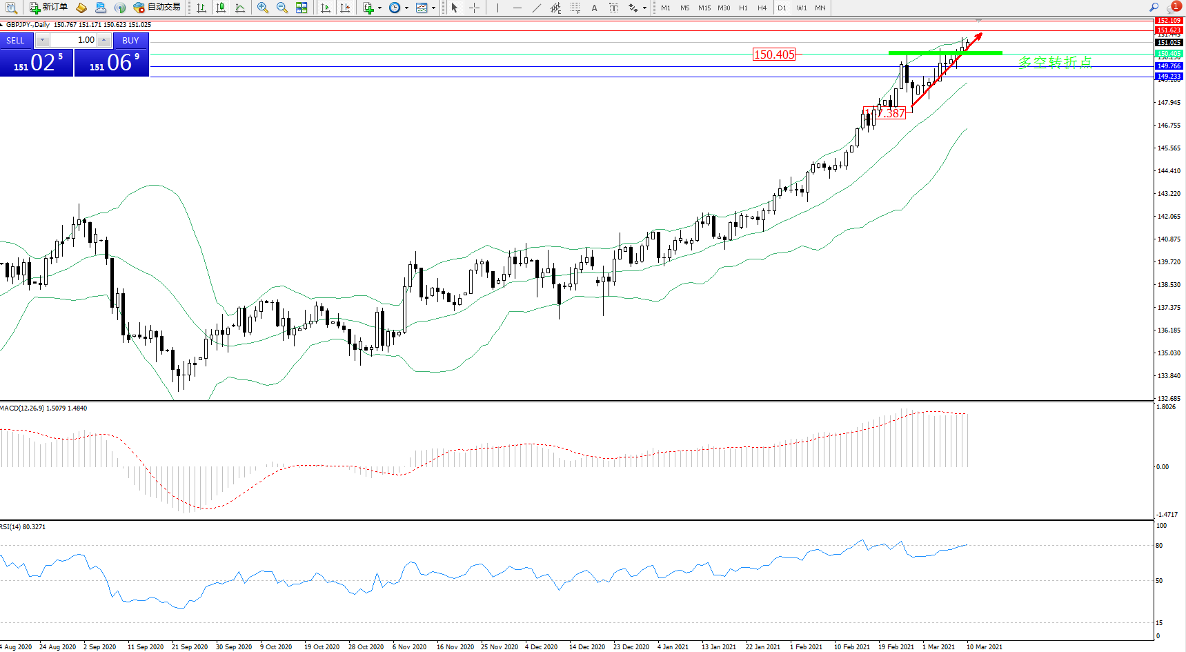 技术点评:多头动力延续布林带指标通道中上轨区间持续震荡上扬态势良好,高位短暂回撤后再度向上拉升上行,多头动力尚未有止步迹象,布林带指标呈多头上行走势持续中,MACD指标处于多头区域高位维持整理平移中,RSI指标处于超买区80均衡线附近持续整理平移中;